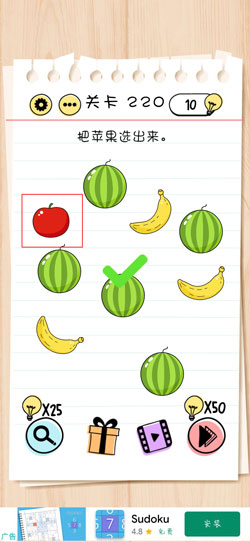 第220关把苹果选出来攻略