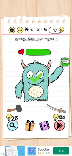 谜题急转弯Brain Test是一款充满趣味和挑战性的脑洞游戏,这里有许多谁也说不出答案的脑筋急转弯,放大你的脑洞,不要局限在题目的问题,也行文字和图片就是陷阱,那么谜题急转弯Brain Test第218关怎么通关?今天小编就给大家带来我们必须阻止那个怪物通关答案一览,相信看完很多小伙伴都忍不住要跃跃欲试了。