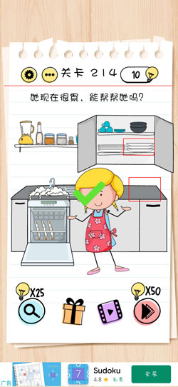 答案:点击水槽下方的洗碗机,再将右上的橱柜打开,将洗碗机内喜好的碟子一个个放在柜子内碟子的旁边,然后再将脏碟子放入洗碗机,有洗碗机可以洗碗,就不会她动手洗碗了,但是要先将喜好的碟子拿出来,不然一起洗会弄脏的。