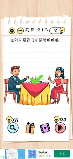 谜题急转弯Brain Test是一款充满趣味和挑战性的脑洞游戏,这里有许多谁也说不出答案的脑筋急转弯,放大你的脑洞,不要局限在题目的问题,也行文字和图片就是陷阱,那么谜题急转弯Brain Test第213关怎么通关?快来看看这篇在别人看到之前帮她擦擦嘴通关答案一览,相信大家一定会有新的认识。