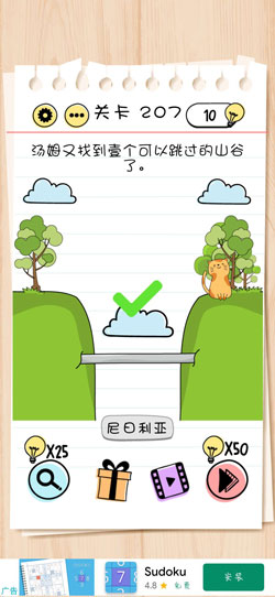 谜题急转弯Brain Test是一款充满趣味和挑战性的脑洞游戏,这里有许多谁也说不出答案的脑筋急转弯,放大你的脑洞,不要局限在题目的问题,也行文字和图片就是陷阱,那么谜题急转弯Brain Test第207关怎么通关?今天小编就给大家带来汤姆又找到壹个可以跳过的山谷了通关答案一览,相信看完很多小伙伴都忍不住要跃跃欲试了。