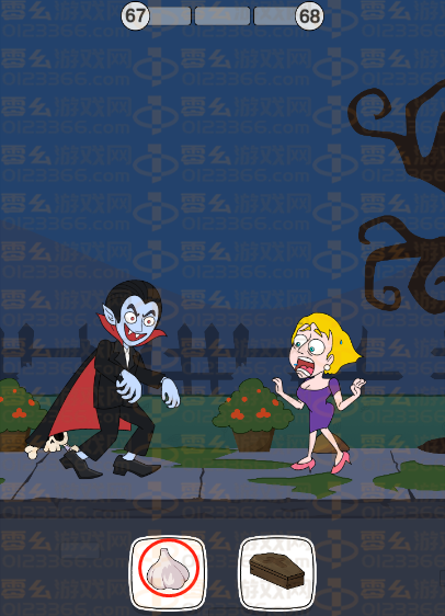 3、场景1吸血鬼拦住的小姐姐的去路,选择大蒜丢他。