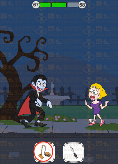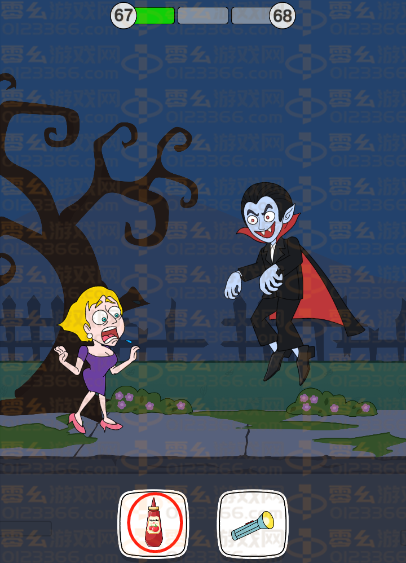 4、场景2吸血鬼又飞到前面来了,这次选择番茄酱倒在地上。