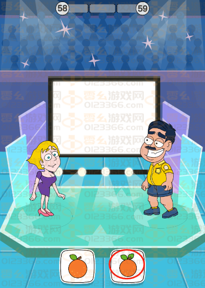 3、场景一是一位大叔跟小姐姐pk,这一题选择有两片叶子的橙子。