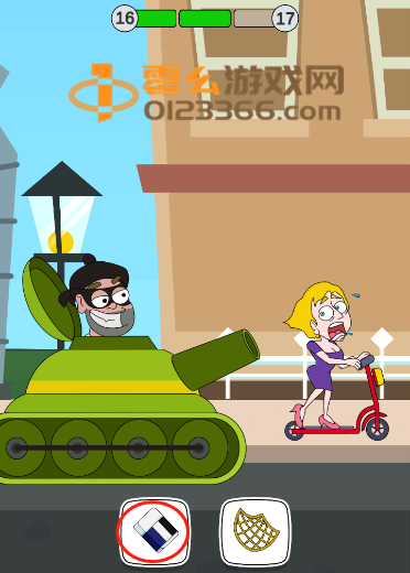 步骤三:选择第一个橡皮擦,把小偷的坦克擦掉。