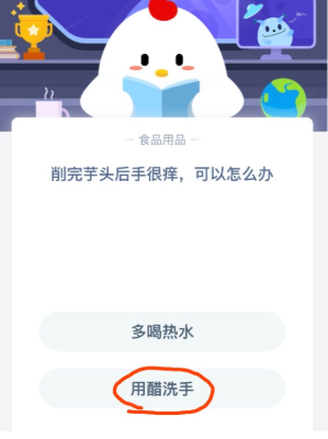 你们知道在支付宝蚂蚁庄园的玩法中,今天的题目,削完芋头后手很痒可以怎么办?游戏爱好者小编分享了蚂蚁庄园答题攻略,一起看看吧。