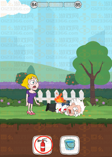 3、场景一白发博士的飞行器着火了,选择灭火器来帮助白发博士。