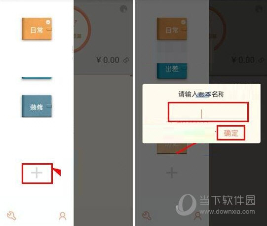 2、点击下方的【+】然后点击下方的编辑框输入账本名称,最后点击【确定】即可。(如下图)