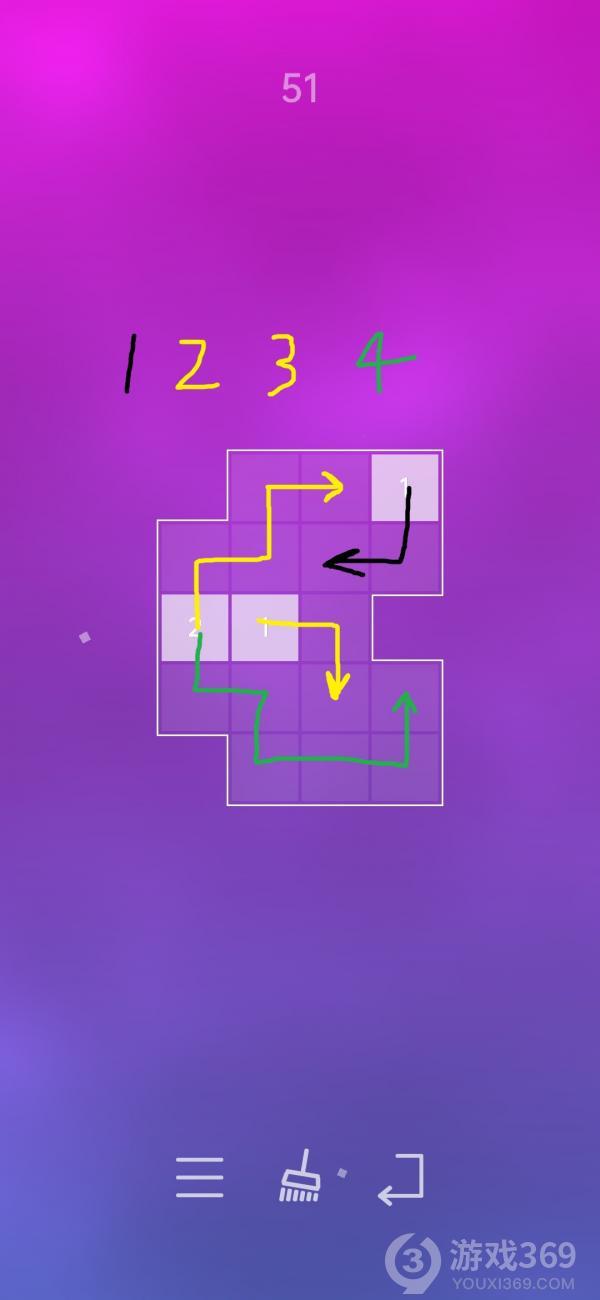 玩法理解后,其实很简单。点击方块向四个方向其一滑动,会自动以一条线填充剩下的格子,直到有两个方向可走则停止。填满所有格子数字,可以从该方块延伸出几条线,填充的顺序非常重要,这是它比较有趣的地方。老少皆宜锻炼你的大脑,还有更多欢乐挑战模式,等你来挑战,快带上你的小伙伴一起来体验吧