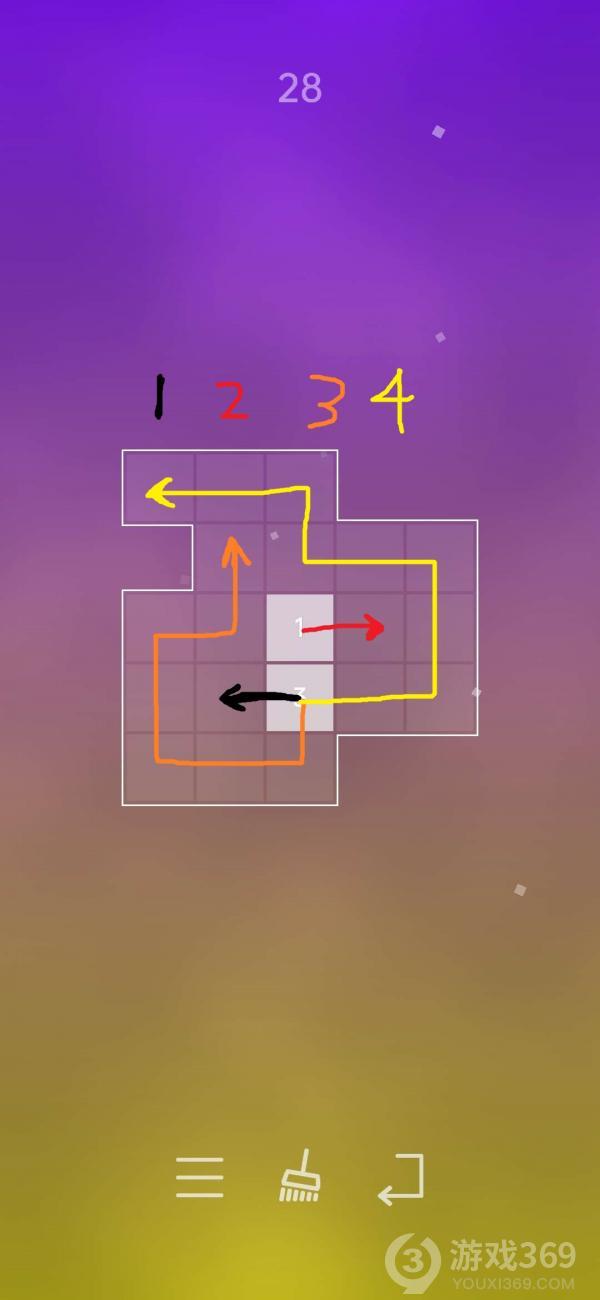玩法理解后,其实很简单。点击方块向四个方向其一滑动,会自动以一条线填充剩下的格子,直到有两个方向可走则停止。填满所有格子数字,可以从该方块延伸出几条线,填充的顺序非常重要,这是它比较有趣的地方。老少皆宜锻炼你的大脑,还有更多欢乐挑战模式,等你来挑战,快带上你的小伙伴一起来体验吧