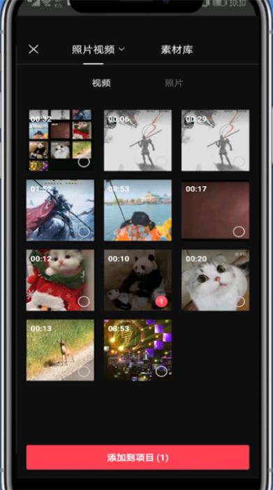 2、选择一段视频,点击【添加到项目】