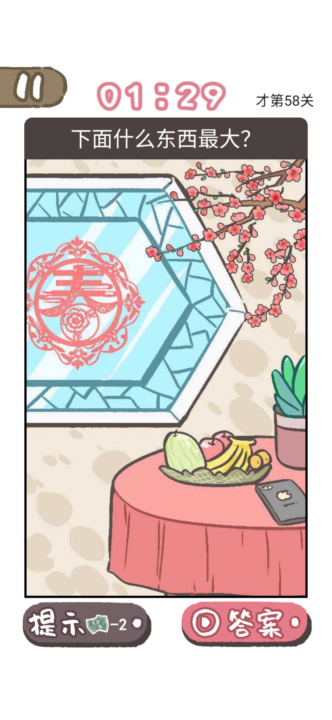 我太难了老铁是一款网络用语改编的大脑洞手游,在游戏中玩家会遇到许多的谜题,这些谜题的答案跟生活紧密相连,不仅要脑洞够大,思路清晰,还要知道需要梗,也能够考验玩家的细心程度,超多有趣的游戏关卡等你来挑战,带你感受游戏的畅快体验,那么我太难了老铁第58关怎么过?快和小编一起来看看这篇下面什么东西最大快速通关攻略一览,相信能帮助大家了解。