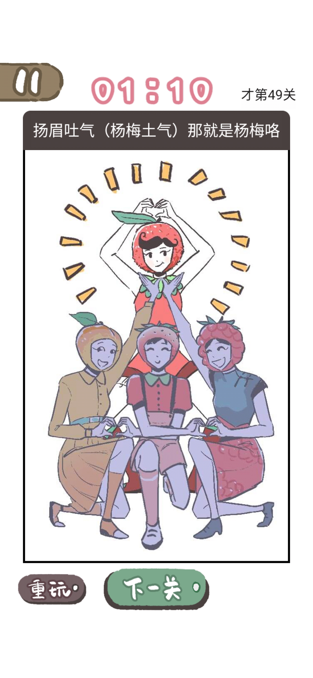 上文就是小编为您带来的梅子树莓杨梅草莓谁穿的最不好看快速通关攻略一览资讯了,更多精彩资讯请多多关注游戏爱好者。