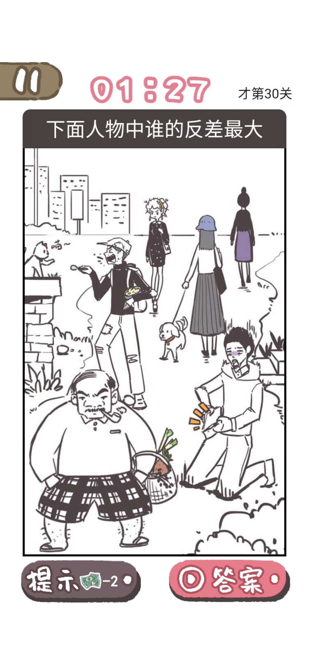 我太难了老铁是一款网络用语改编的大脑洞手游,在游戏中玩家会遇到许多的谜题,这些谜题的答案跟生活紧密相连,不仅要脑洞够大,思路清晰,还要知道需要梗,也能够考验玩家的细心程度,超多有趣的游戏关卡等你来挑战,带你感受游戏的畅快体验,那么我太难了老铁第30关怎么过?一起来看看这篇下面人物中谁的反差最大快速通关攻略一览,熟悉下吧。