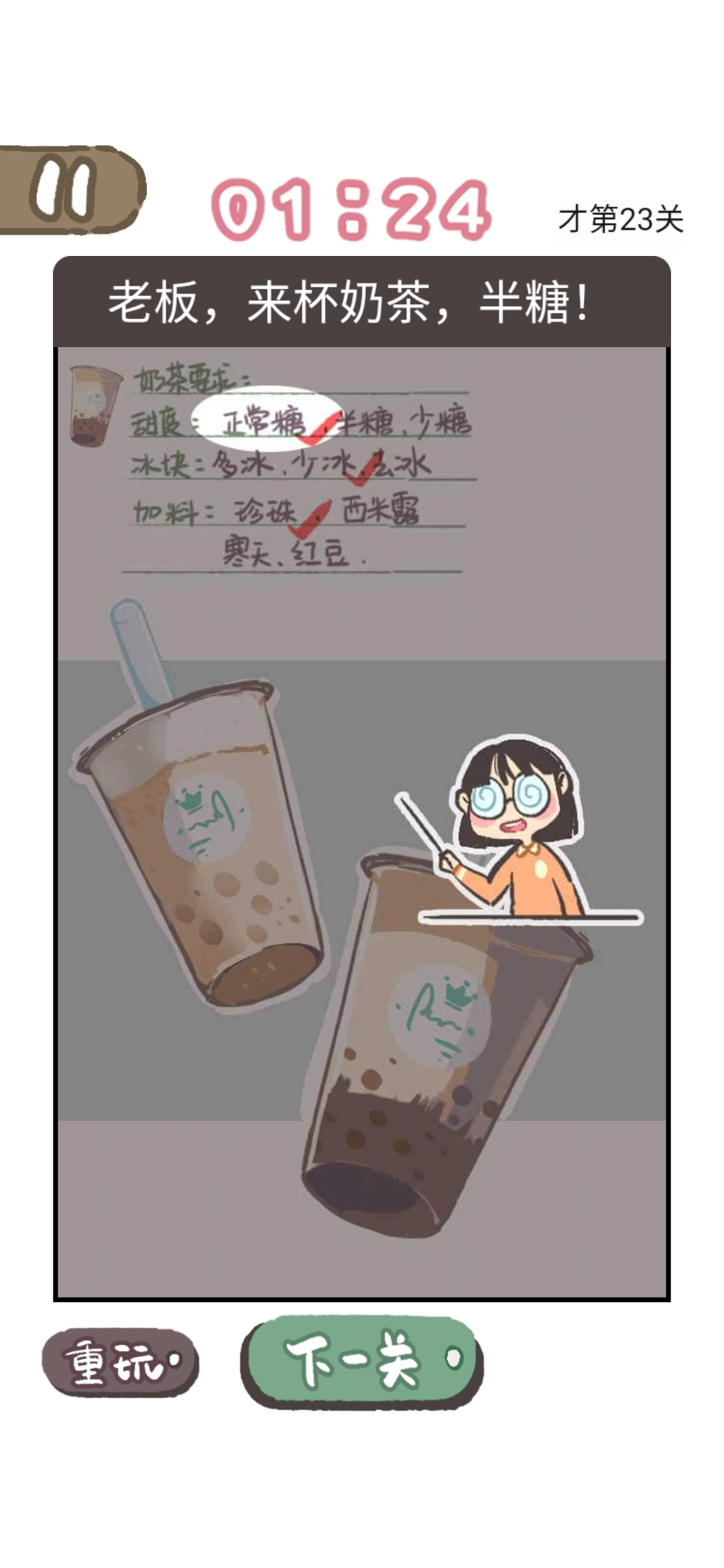 以上就是给女朋友点了这杯奶茶为什么她却生气了快速通关攻略一览的全部内容了,快快收藏游戏爱好者查看更多游戏资讯攻略。
