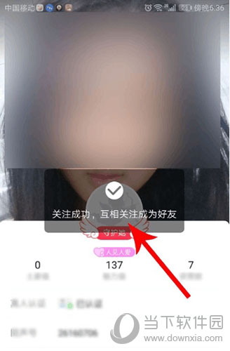 3.点击后系统打开提示弹窗,提示关注成功,互相关注成为好友。