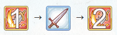 对前方第2位的1名敌方角色造成中幅度的物理伤害(伤害量上升),并小幅度拉近使其晕眩。