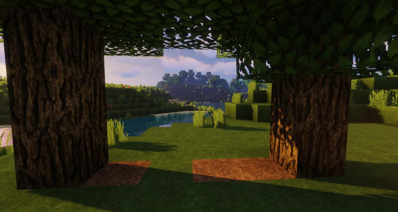 1.用橡树苗和骨粉在相距四格的地方种出两棵树来。