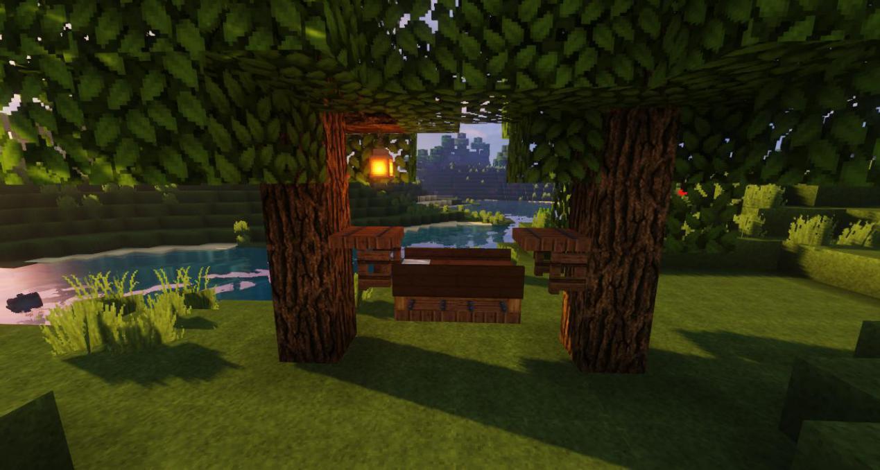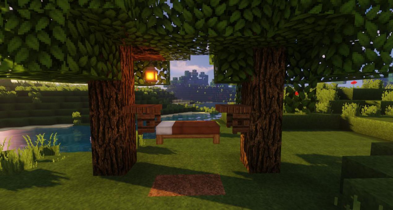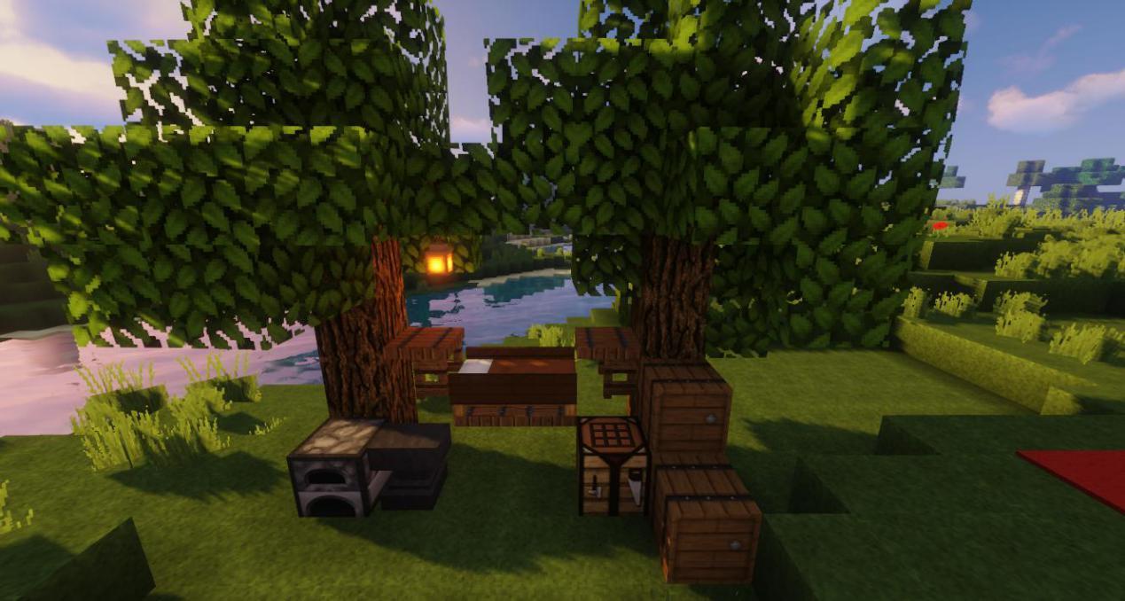 4.放上熔炉、铁砧、木箱等作为装饰,耶!功能齐全的吊床大功告成。