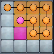 安装手柄玩游戏,通过控制粉色圆点使其和蓝筐一起从黄色线处出去。