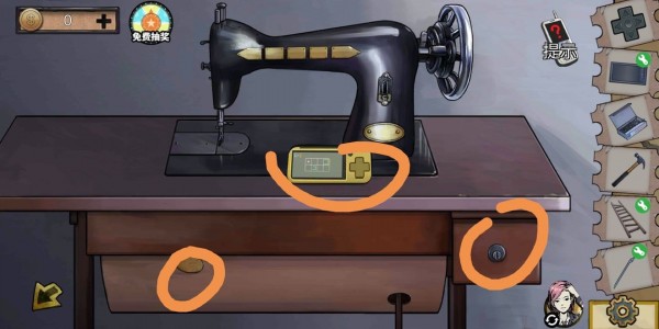然后用降过温的钥匙打开缝纫机的抽屉,接着打开针线盒,拿纸条。
