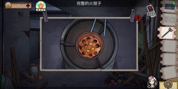 组合火钳,拿走碳炉里的烧红的钥匙。
