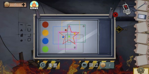 规则是:点数代表被多少个图形框住,即红色2个、橙色4个、蓝色3个、绿色6个,完成后获得钥匙。