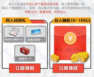 四人小队成员均在心悦下载游戏并注册,每日即可领取一份四人下载成团礼。