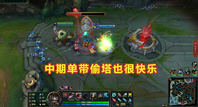 对拼选择草丛或者特殊位置卡视野,塔姆没有什么突进能力,所以要玩一点战术才能抓到人,而全部出上ad暴击装备后,输出简直叫一个猛,对拼无限甩头就可以了,而偷塔更是成吨的伤害往下掉,来人了就开大跑,非常快乐,最后中期塔姆装备成型后,防御塔直接甩头拆,出上全ad装备的塔姆6秒就摧毁一座高地塔,非常恐怖。