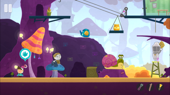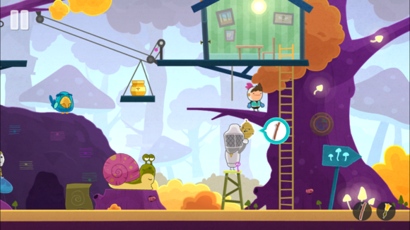 回到第一个场景,可怜的蜗牛没房子,只能用纸盖着,我们用树枝翘起蜗牛壳!