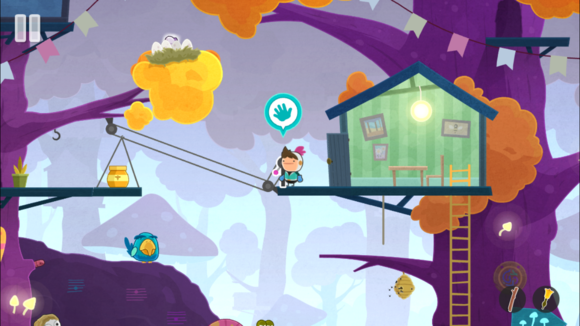 把绳子系在钩子上,这时候不要贱拉绳子,虽然你拉了也没什么卵用,因为零件掉下来下面,这只肥鸟会以为这是它的蛋,把它衔上去
