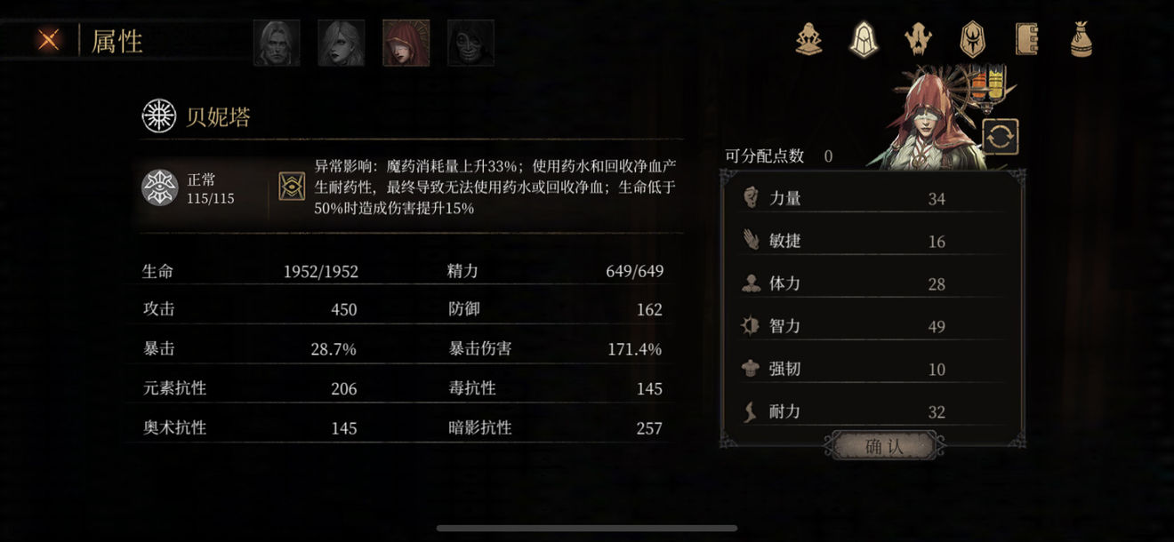 经过无数尝试的尝试,最终配出了一套攻守兼备的加点方案,这些数字很有意义,会在加点收益大幅减小时打住,也就是阀值,从而实现人物全面属性最大化提升,希望适合稳中求胜的玩家。
