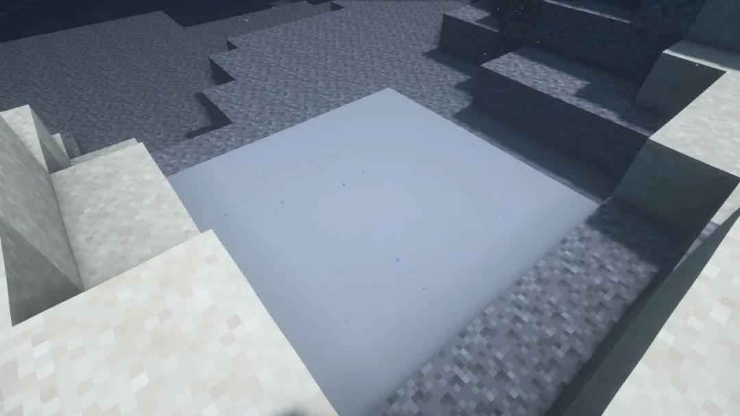 首先我们选在河流的入海口建家,然后在水面底下7格的位置,用白色混凝土铺上一层66的底。