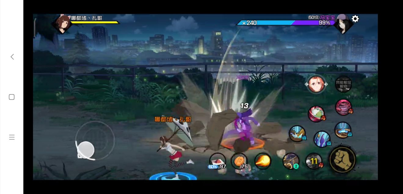 攻击一:冯宝宝角色所在的方向分别发三段攻击。