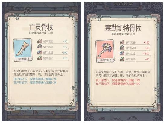中间格研究后可以获得丧尸形态专属装备亡灵骨杖,属性还是非常强力的。