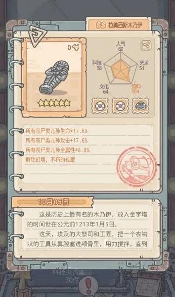 中间格防腐器官研究获得拉美西斯木乃伊贵重碎片,共计5次,共获得280碎片。