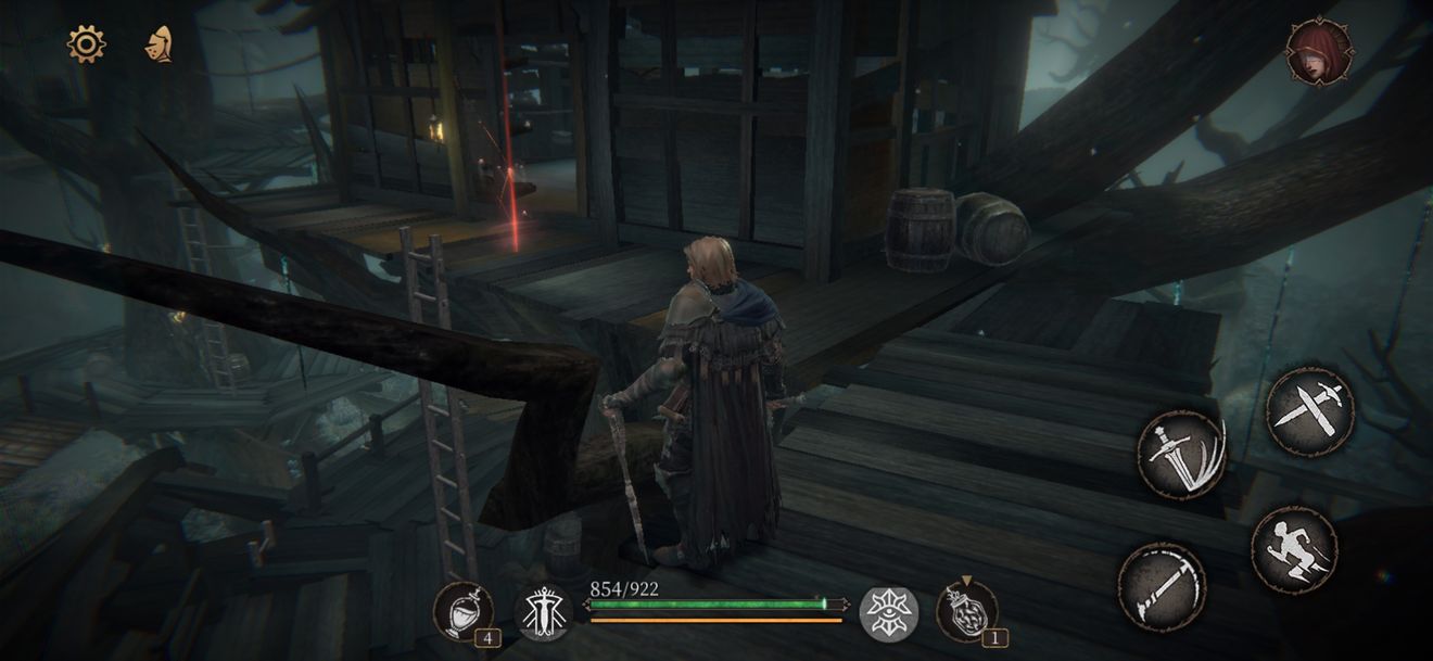 在城堡内部往下走,遇到木门出去之后不断往下拿到的,会与进沼泽地之前的那个有小湖和树干的地方相通。