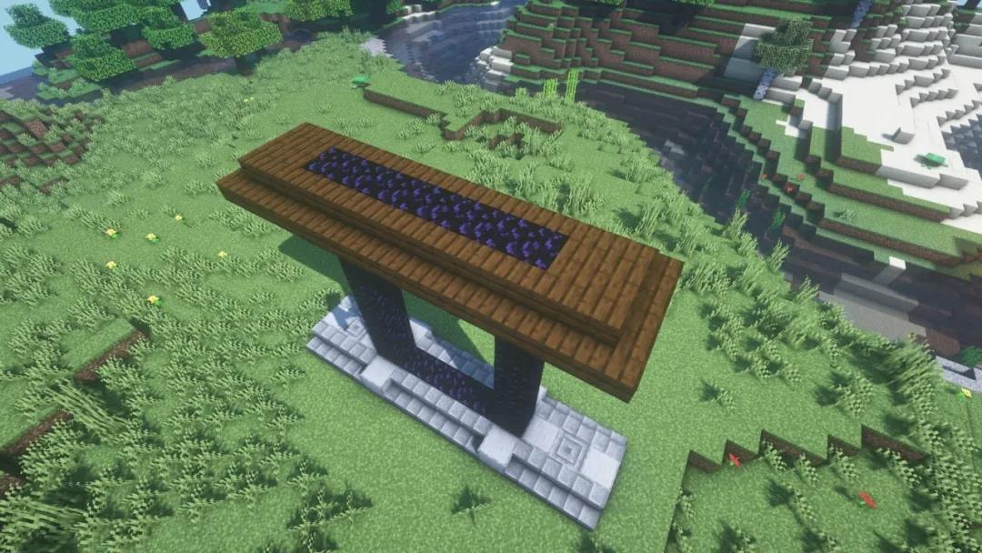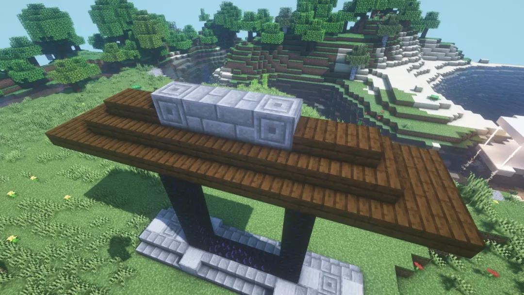 接着用石砖墙和深色橡木栅栏做成下界传送门的支柱。