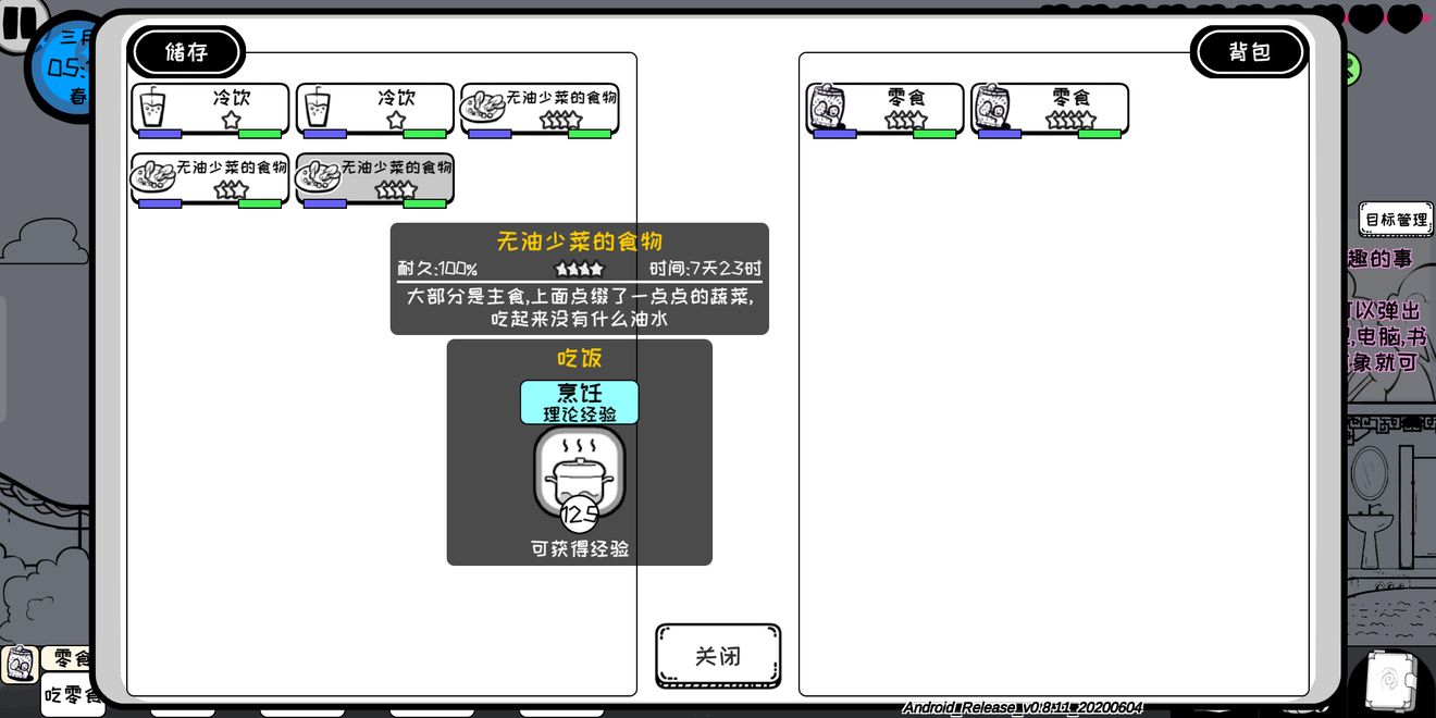 去餐馆购买低营养值的食物,与家里的食物交替食用,注意自家高营养食物不宜食用过多,食用量取决于购买的低营养食物的营养值。这个思路的优点在于对身体没有任何副作用。但是前提条件是零花钱够用。缺点则是操作麻烦,每次要跑大老远才能到餐馆,而且费钱。(也可利用冰箱刷新bug,不过不稳定,且同样操作繁琐)