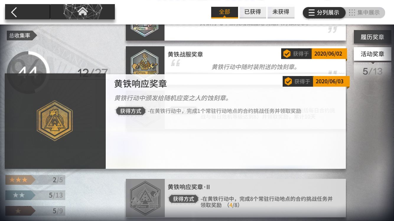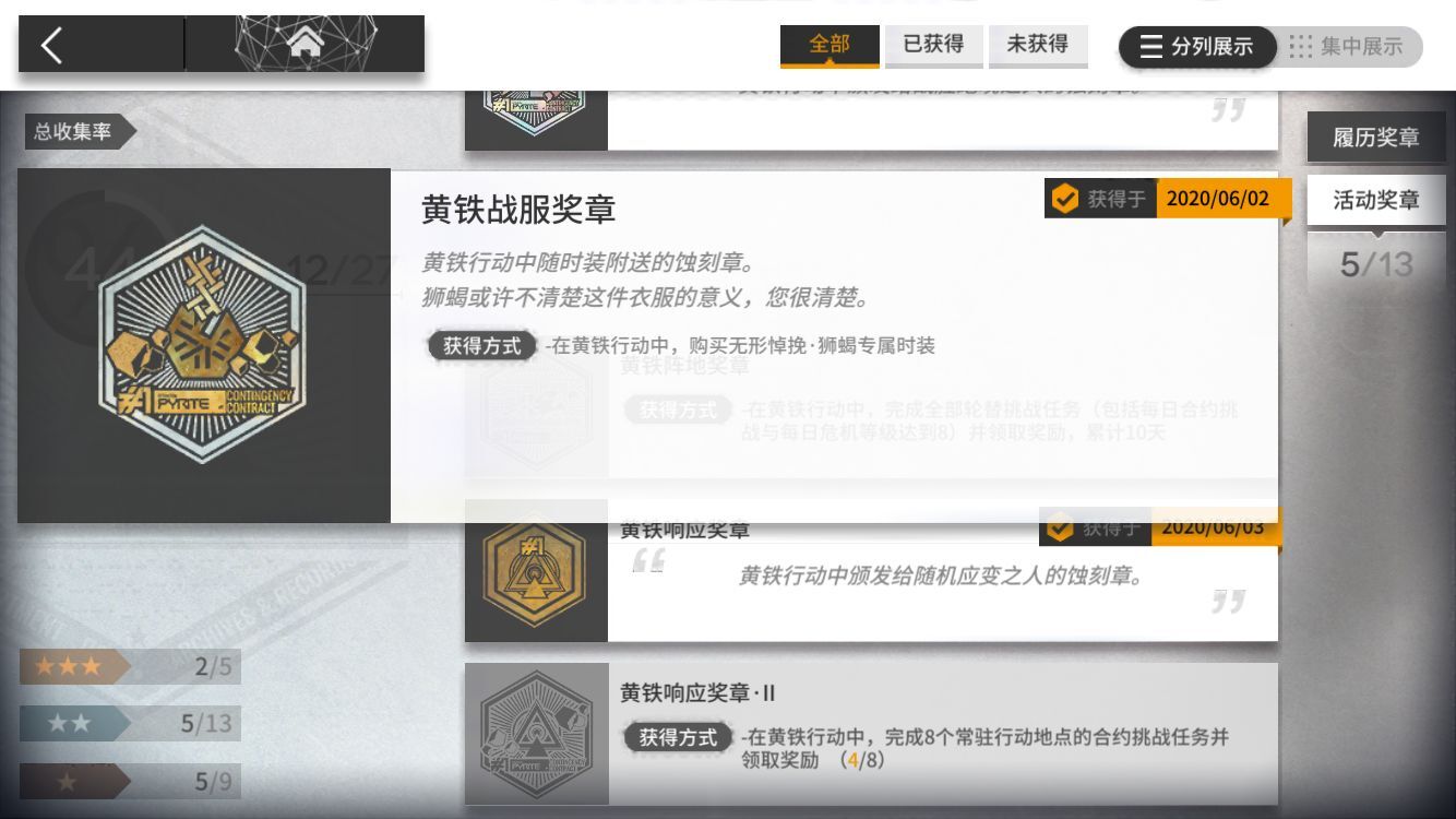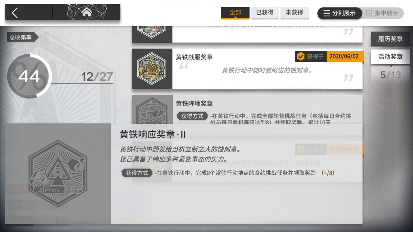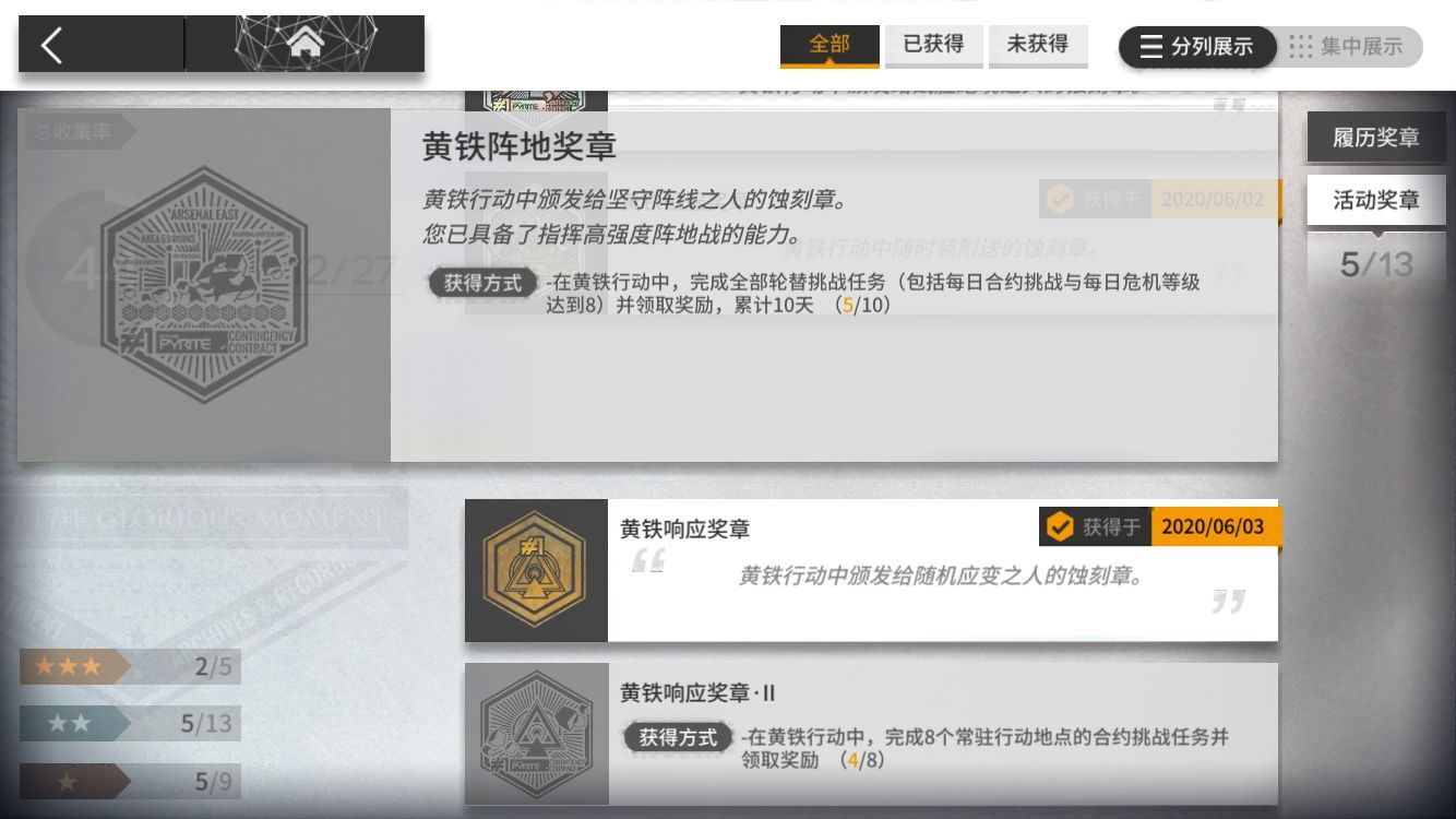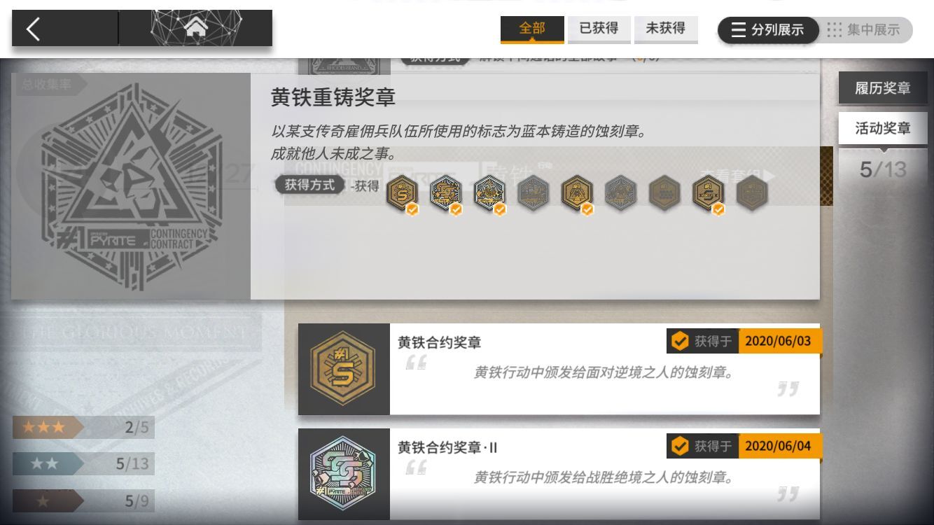 需要获得9个前置蚀刻章(即上面九个),哪怕少一枚都不能获得这个大的,所以如果练度合格的博士,务必看清楚前置9枚分别要求是什么,千万别自己以为都拿到了,结果活动结束发现并没有。