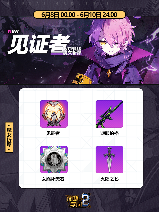 2020年6月8日~6月10日24:00魔女祈愿中有机会获得。