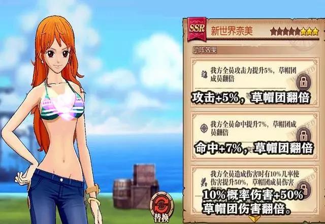 娜美后续在草帽团成型后,可以转做助战位,其助战效果非常凶悍,而且对草帽团有着翻倍的效果,而且娜美自身保命能力还是比较一般,后续路飞、山治等人的登场,娜美助战会是更好的选择。目前不清楚麻痹的效果是否对主线BOSS有效,如果有效可以入手刷剧情。