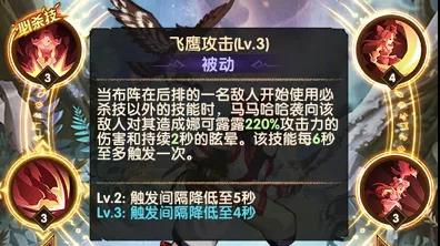 当布阵在后排的一名敌人开始使用必杀技以外的技能时,马马哈哈袭向该敌人对其造成娜可露露攻击力的伤害和持续1秒的眩晕。该技能每2秒至多触发一次。触发间隔降低至2秒