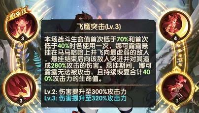 普通攻击暴击时将击飞敌人,并使敌人眩晕1秒,战斗中,普通攻击的频率上升眩晕时间提升至2秒。