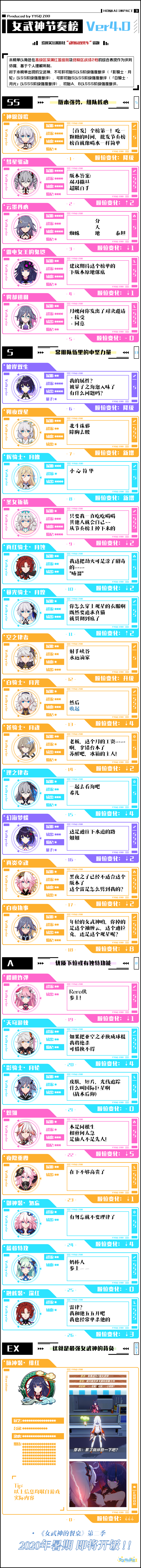 崩坏34.0版本女武神节奏榜排名是怎么样的?崩坏3将近期更新后步入4.1版本,并于7月3日公开了雷之律者的动画短片。那么在目前的4.0版本末期女武神的强度排行是什么样子的呢?接下来就让我们一起来看一看吧。