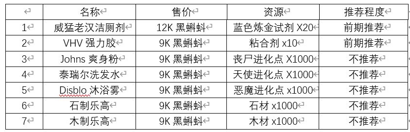 黑心商品,大部分还是不推荐购买的。产出的资源也没啥用,还不如留着准备克隆兵种实在一点。