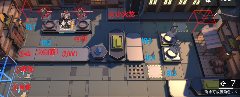 机1、2在放下麦哲伦之后即登场,在放下小火龙,敌方第一波大怪登场时开启麦哲伦技能。