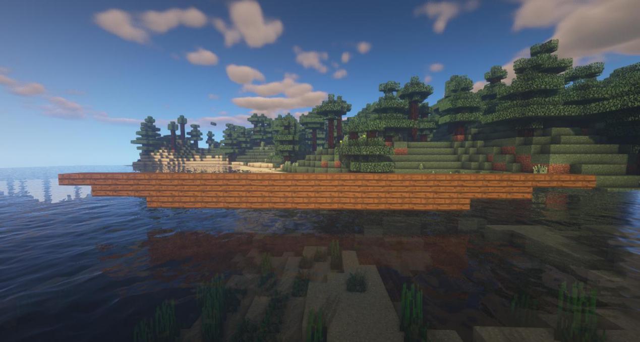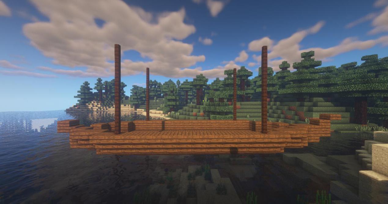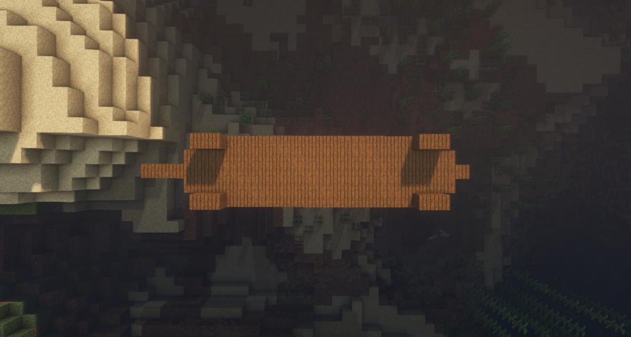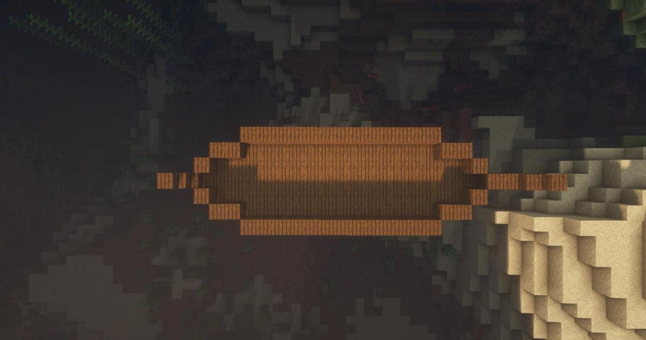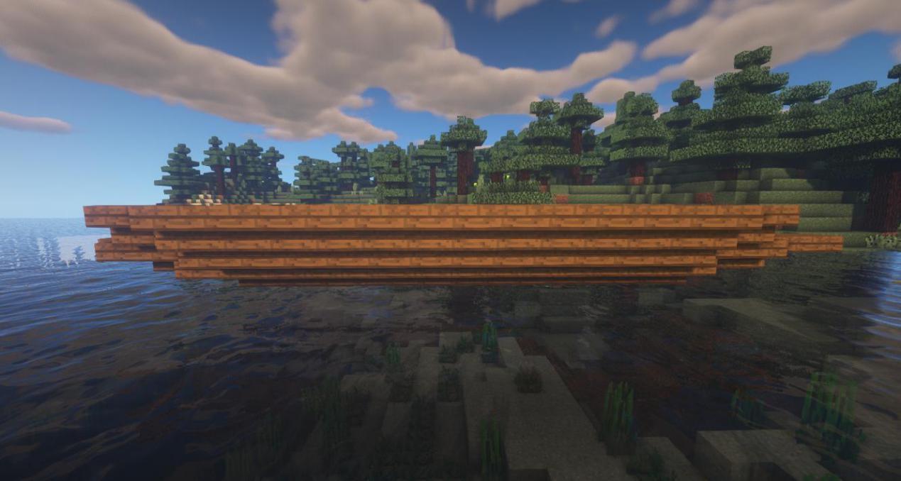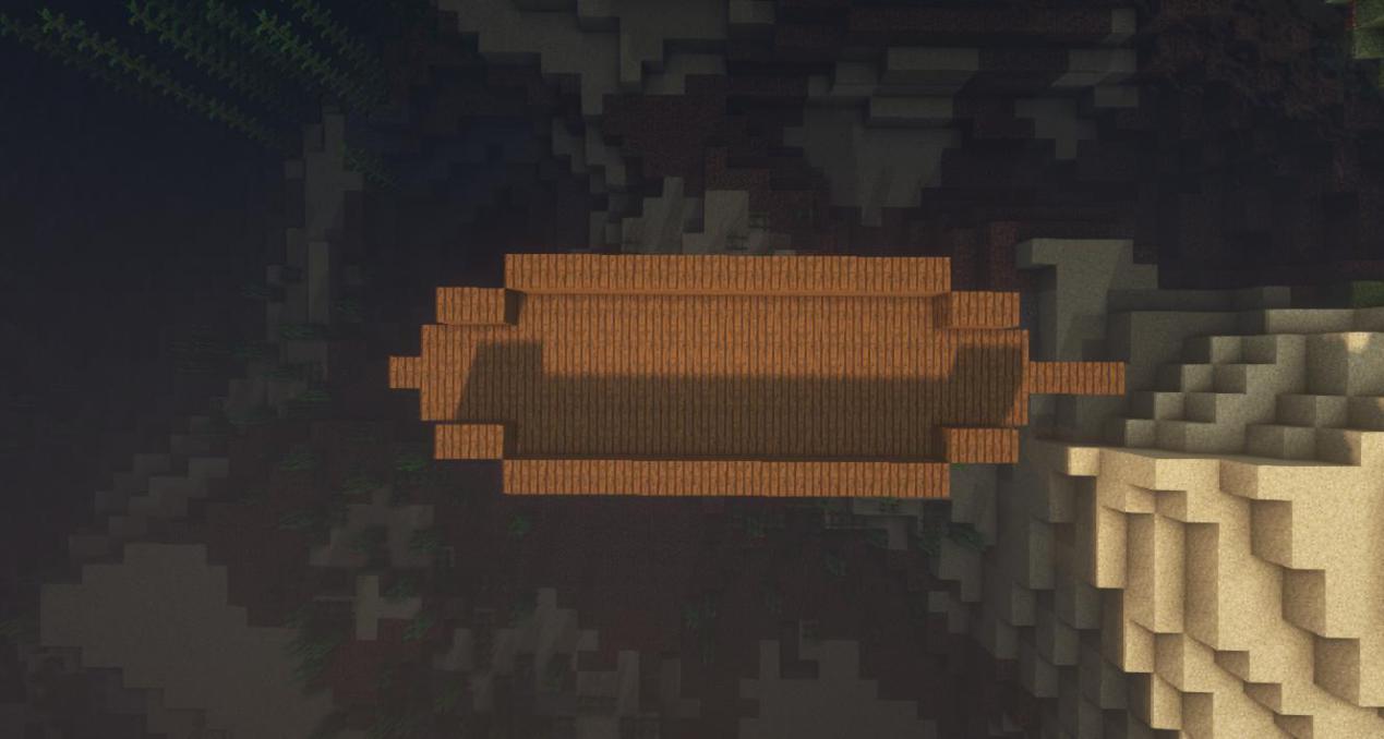 首先用云杉木台阶搭出船的中轴线,长度为15。