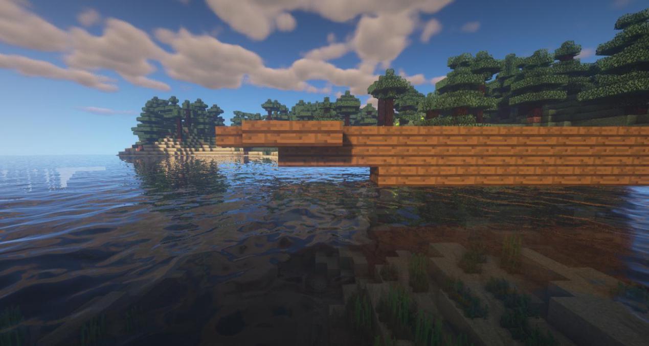 先在如图位置放两个云杉木台阶,另一边也是这样。