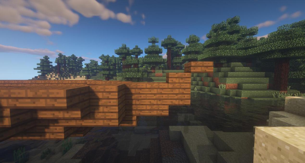 用云杉木板将云杉木台阶上方的缺口补齐。